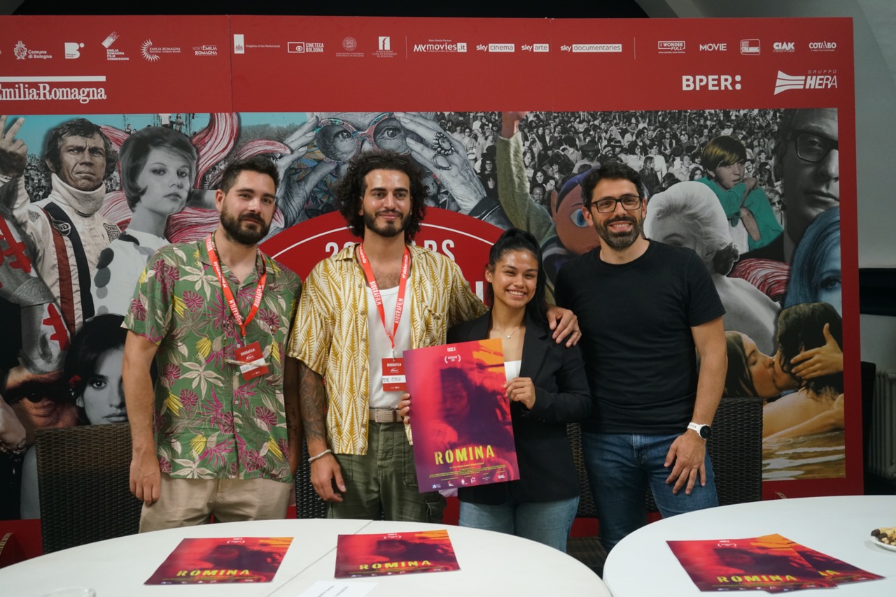 I registi Valerio Lo Muzio e Michael Petrolini, la protagonista Romina Cabezas Navarete, il produttore Emiliano Trovati per "Romina"