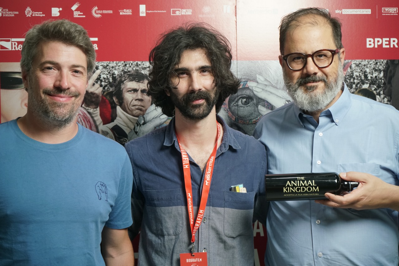 Il regista Thomas Cailley e il compositore Andrea Laszlo De Simone con Andrea Romeo per The Animal Kingdom