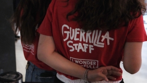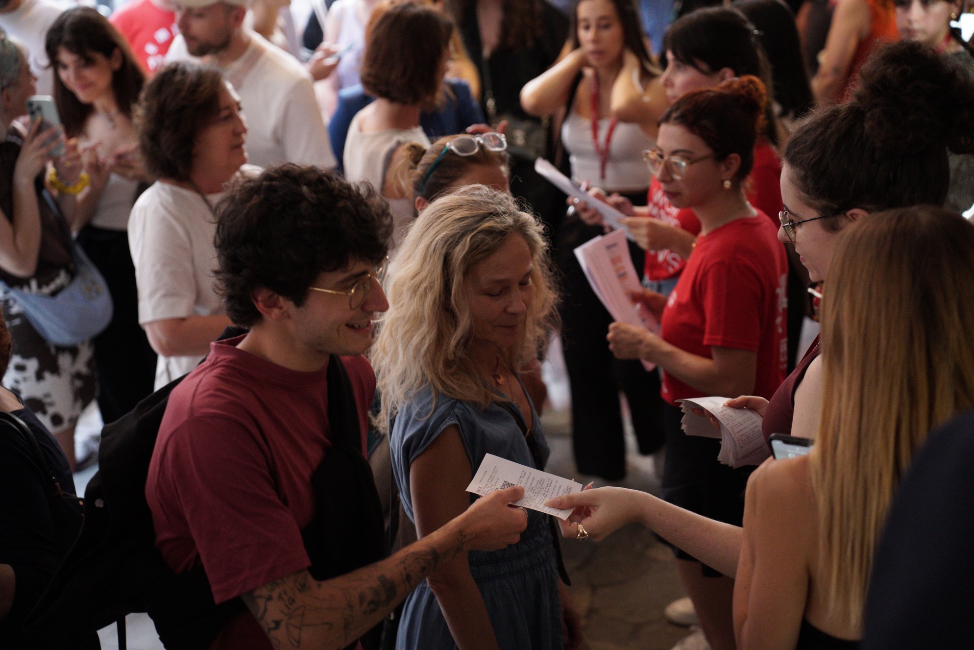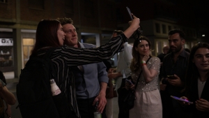 Tom Quinn, Joshua Oppenheimer, Signe Byrge Sorensen e George MacKay alla proiezione di Orwell 2+2=5