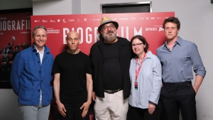 Massimo Benvegnù e Raoul Peck regista di Orwell 2+2=5